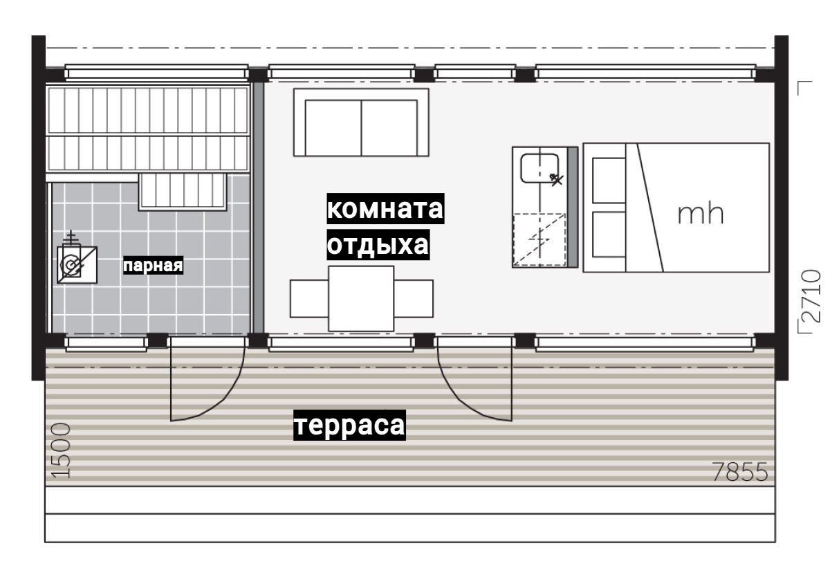 Выполнены из клееного бруса на выбор: 80/140/160/200 мм